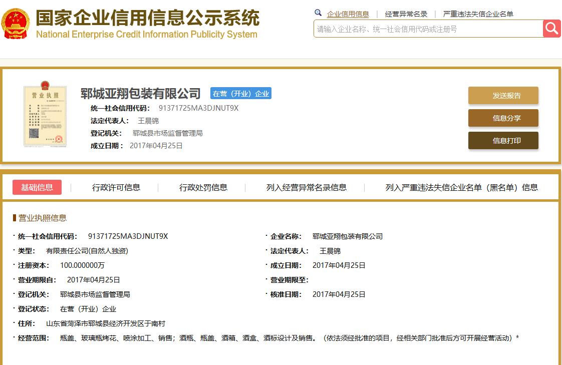 郓城亚翔包装有限公司生产晶白、高白、彩瓶等综合性日用玻璃容器的制造,在生产玻璃酒瓶中不断创新,以其用途广泛,造型行销国内外市场,销售玻璃瓶分布各大省市及国外地区,受到好评,匠心品质深受客户信赖,可为广大客户定制加工各类酒瓶、洋酒瓶、茶油瓶、酒坛等。我们以质量开拓市场,以诚信稳定市场,时刻为顾客着想,建立双赢的合作形式模式,倾力赢得市场,为长远发展奠定了基础。 郓城亚翔包装有限公司注重选拔,任用人才,不断引进国内生产、检测设备,从产品的设计开发到玻璃酒瓶的生产加工不断创新,想用户之所想,急用户之所急,拥有一批素质的生产技术人员,并引入并结合本企业制定出一系列科学易行的绩效管理体系和人才培训储备体系,采用的窑炉电脑自控技术和冷热喷涂技术。引进烤花及瓶盖生产线,具有较强自行研发能力。生产设备,管理体制,产品质量可靠,是郓城较大生产玻璃瓶、喷涂烤花企业,产品质量与效运作赢得广大客户的认可并为市场拓展打下良好基础。
